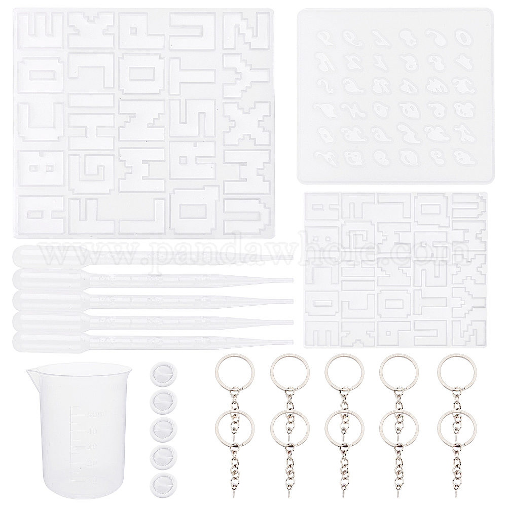 • Белый Сделай сам наборы для ключей, в том числе силиконовые формы с буквами, железа отделились брелоки, пластиковые переносные пипетки, одноразовые латексные детские кроватки, мерный стаканчик пластиковые инструменты, силиконовые формы для подвесок, белые, силиконовые формы: 3 шт.