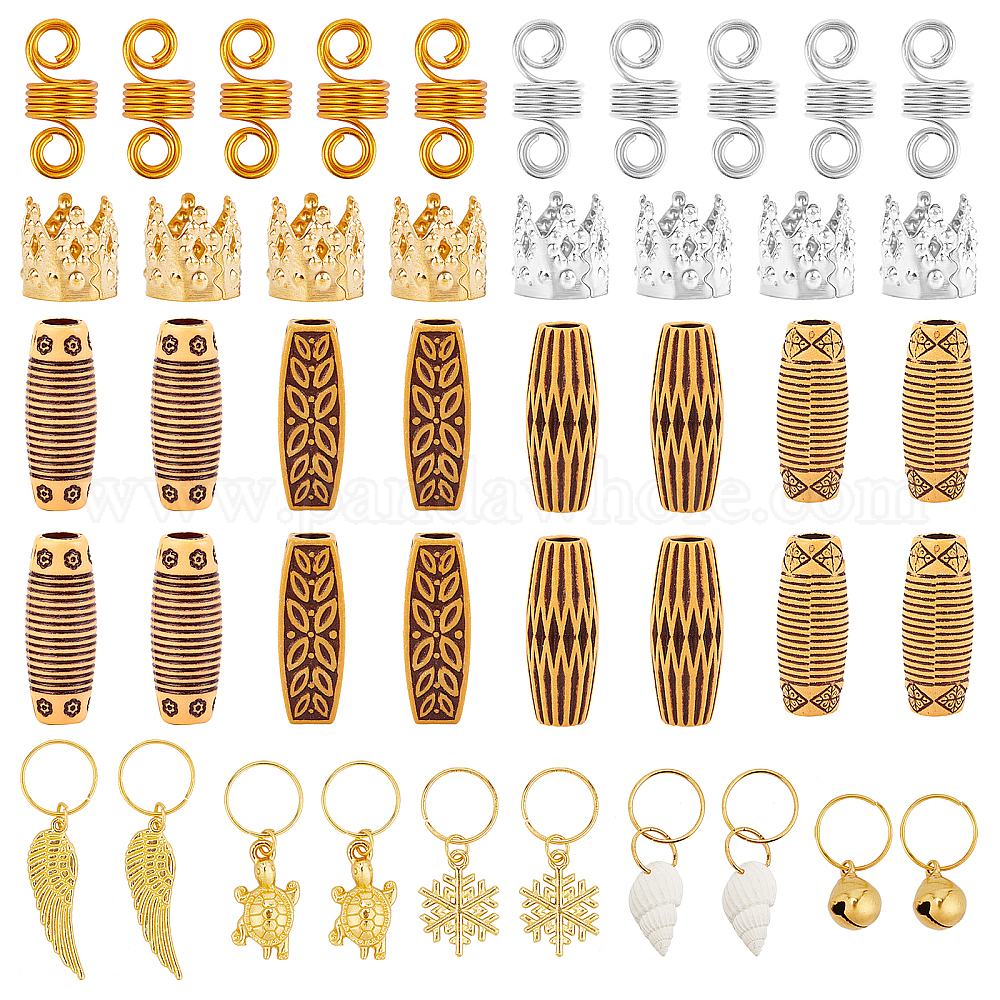 Пластиковые бусины для плетения дредов и алюминиевые бусины для плетения дредов, для укладки волос, с подвесками из сплава / раковины и манжетами-спиралью из алюминия с покрытием, разнообразные