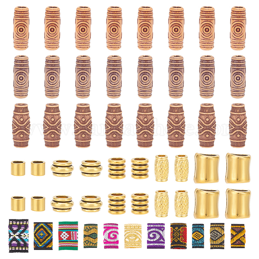55шт дреды бусины украшения для волос, включая тканевые эластичные резинки для волос, украшение для хвоста, колонна из смолы и европейские бусины из сплава