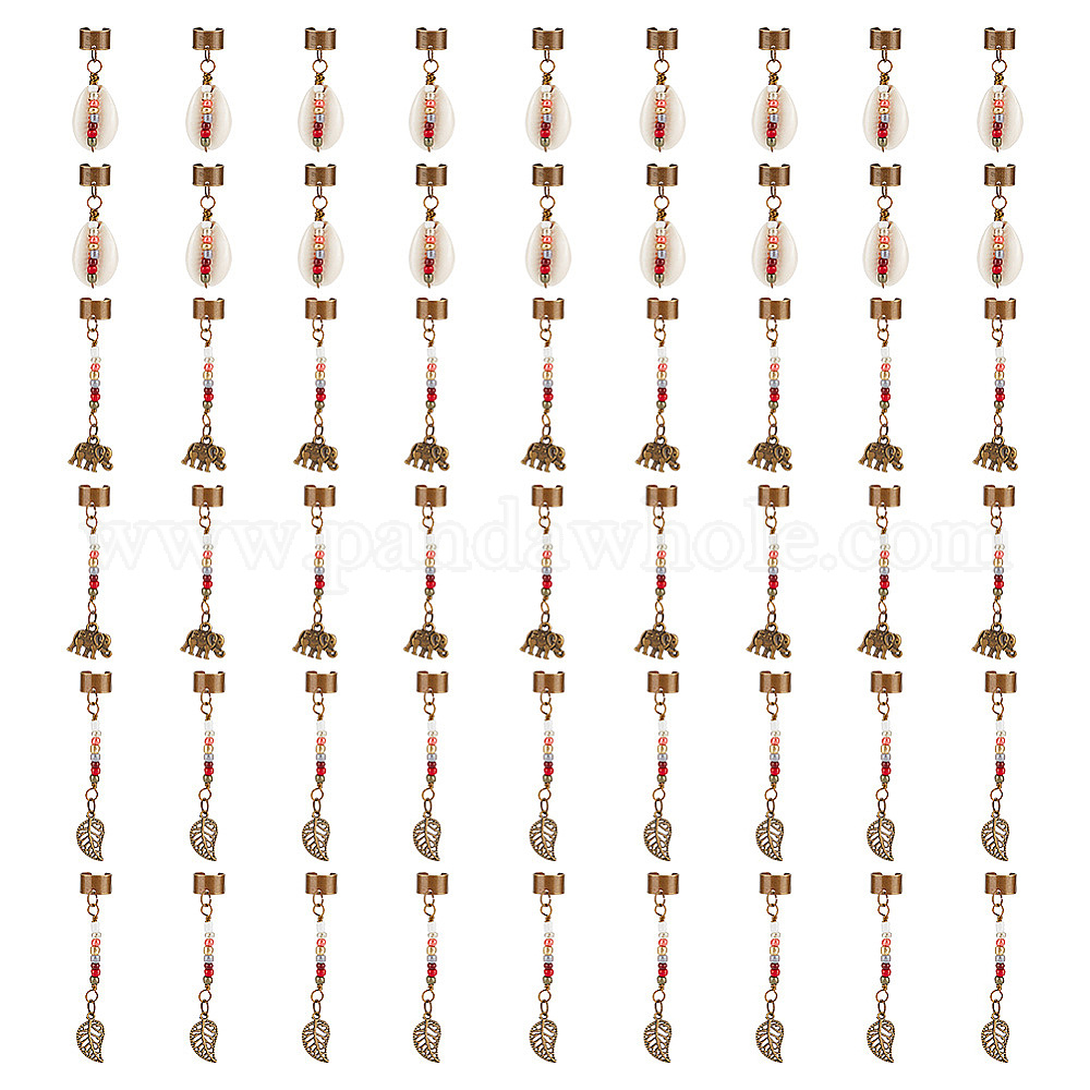 Подвески для волос в тибетском стиле из сплава и раковины каури, ракушка/лист/слон