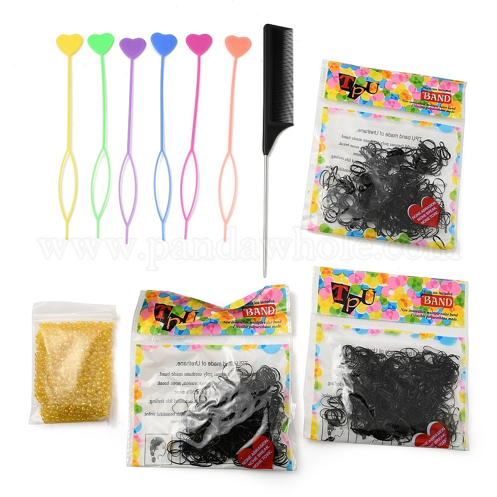 Набор инструментов для укладки волос и плетения кос, В комплект входит инструмент для плетения волос с перевернутым хвостом и расческа из ПК., 6 резинка для волос из эластичной нити для сумки, 1шт стеклянная бусина
