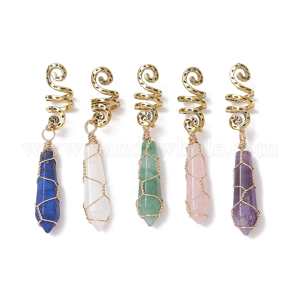 • Античное Золото Натуральный розовый кварц, зеленый авантюрин, аметист, кристалл кварца, лазурит и сплав, плетение из проволоки, подвески для волос, зажимы для украшения, для укладки волос, античное золото , 64.5~66 мм