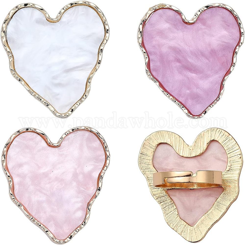3шт 3 цвета регулируемые смоляные палитры кольца, с кольцом из сплава, инструмент для ногтей, для смешивания основы акрилового УФ-гель-лака, сердце (02E7N2)