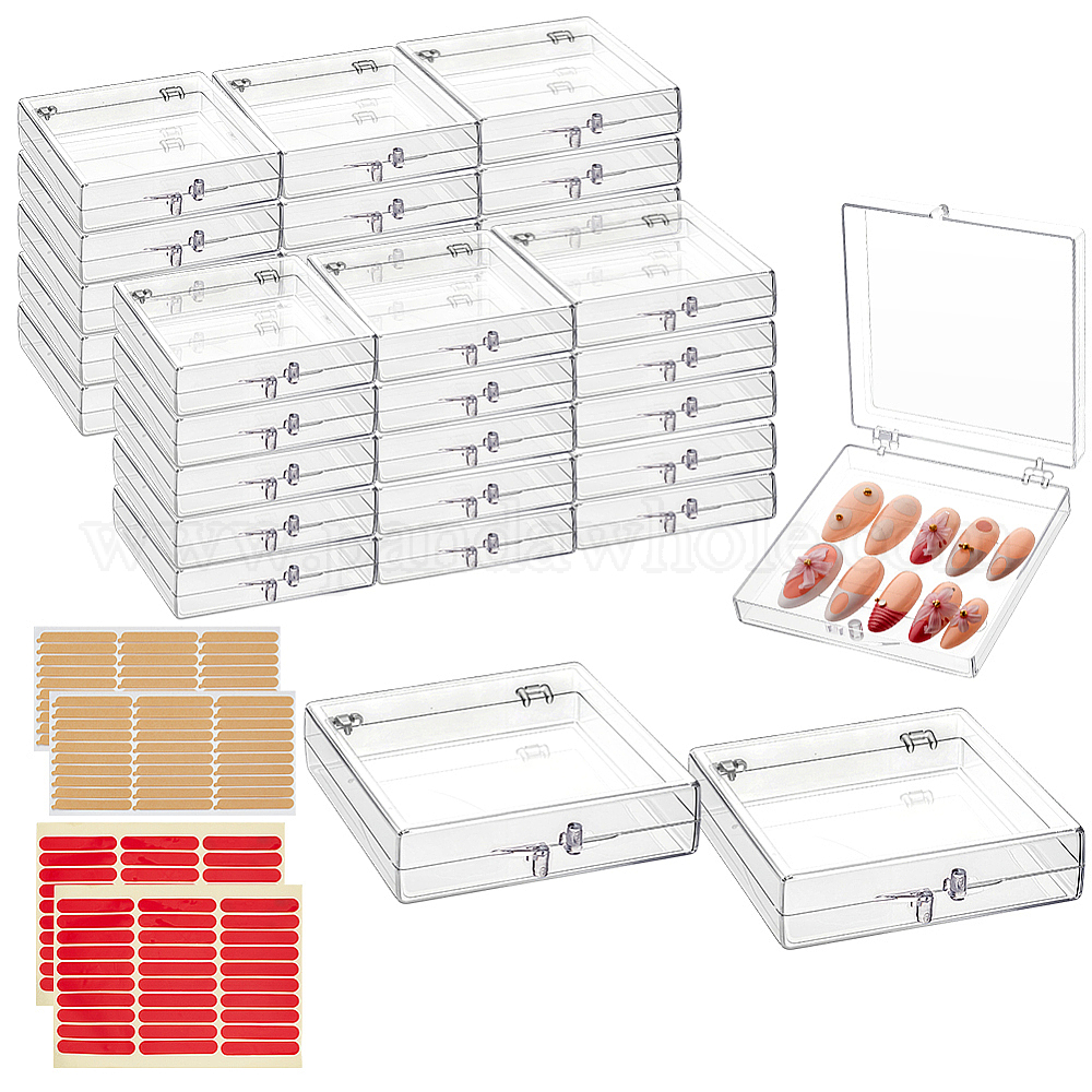 Пластиковая коробка для хранения накладных ногтей: 6.9x6.9x1.8см, 30 шт.