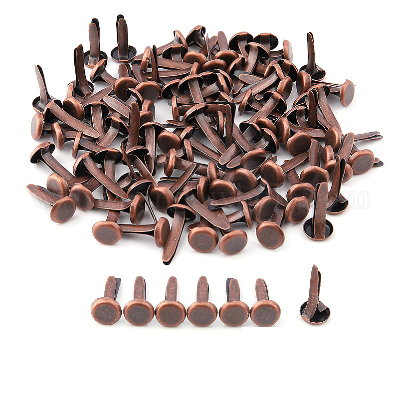 • Красная Медь Железные застежки, для скрапбукинга, Фотоальбом, украшение свадебных принадлежностей, детские куклы, бумажные карточки diy, плоско-круглые, Красная медь, 1.6~1.7x0.8 см, 50 шт / пакет