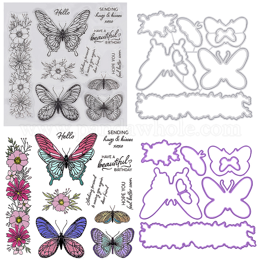 1ПК ПВХ пластиковые прозрачные штампы, с трафаретами из углеродистой стали 1pc, бабочка/животное