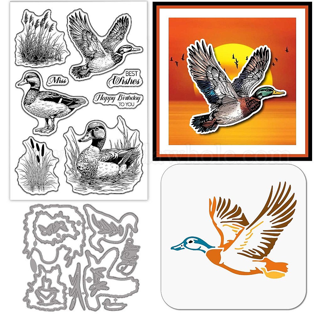 • Утка DIY скрапбукинга наборы инструментов, включая 1трафареты для резки углеродистой стали из ПК, 1трафареты для рисования на животных из ПК и 1 прозрачные штампы из листового ПВХ, утка, 150x150 мм