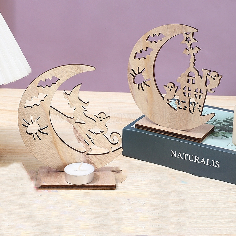 Украшения для Хэллоуина, деревянные подсвечники с полыми лунами, для домашнего украшения рабочего стола