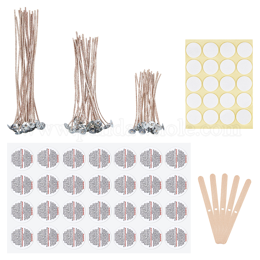 Фитиль из хлопковой свечи, железная плоская круглая опорная плита, с двусторонними самоклеящимися бумажными наклейками, палочки для мороженого из березы