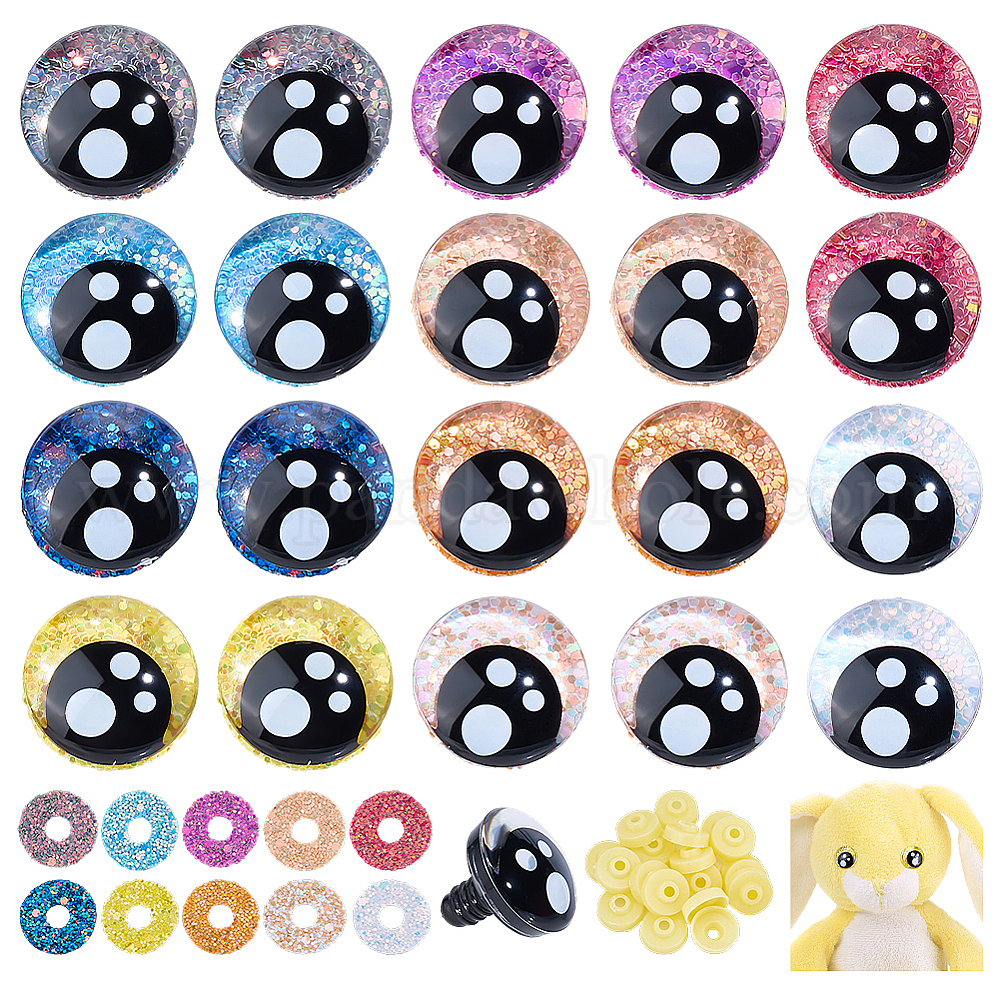 Пластиковые блестящие глаза для куклы: примерно 24мм, 10 цветов, 2 шт / цвет, 20шт.;