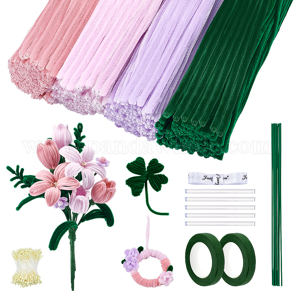Плюшевые палочки своими руками, С стеблями синели, полиэфирные ленты, железная палка, поздравительные открытки и клей-карандаш, а также 5шт. термоплавких пластиковых клеевых стержней