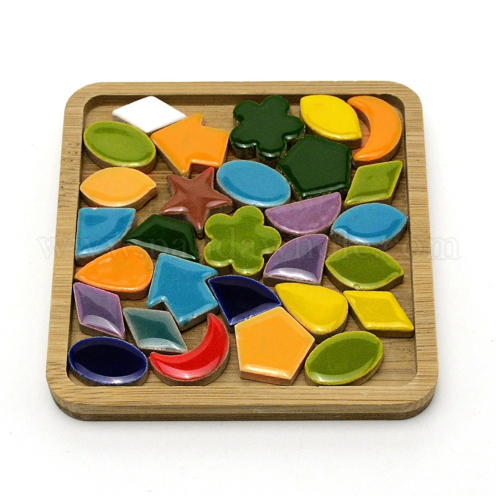 • Разноцветный Наборы фарфоровых кабошонов смешанной формы, с квадратным бамбуковым основанием, мозаичные плитки для поделок, красочный, 95x94x10.5 мм, внутренний диаметр: 84.5 мм, смешанные формы: 20~20.5x12~20.5x5~5.5 мм
