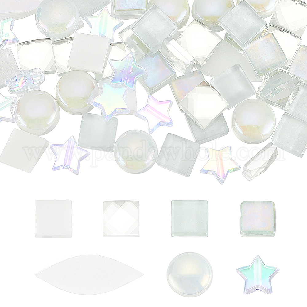140шт 7 стили стеклянные кабошоны и пластиковые бусины, мозаичные плитки, радуга переливающаяся и прозрачная, плоский круглый, звезда, квадрат и лепесток (02NFZY)