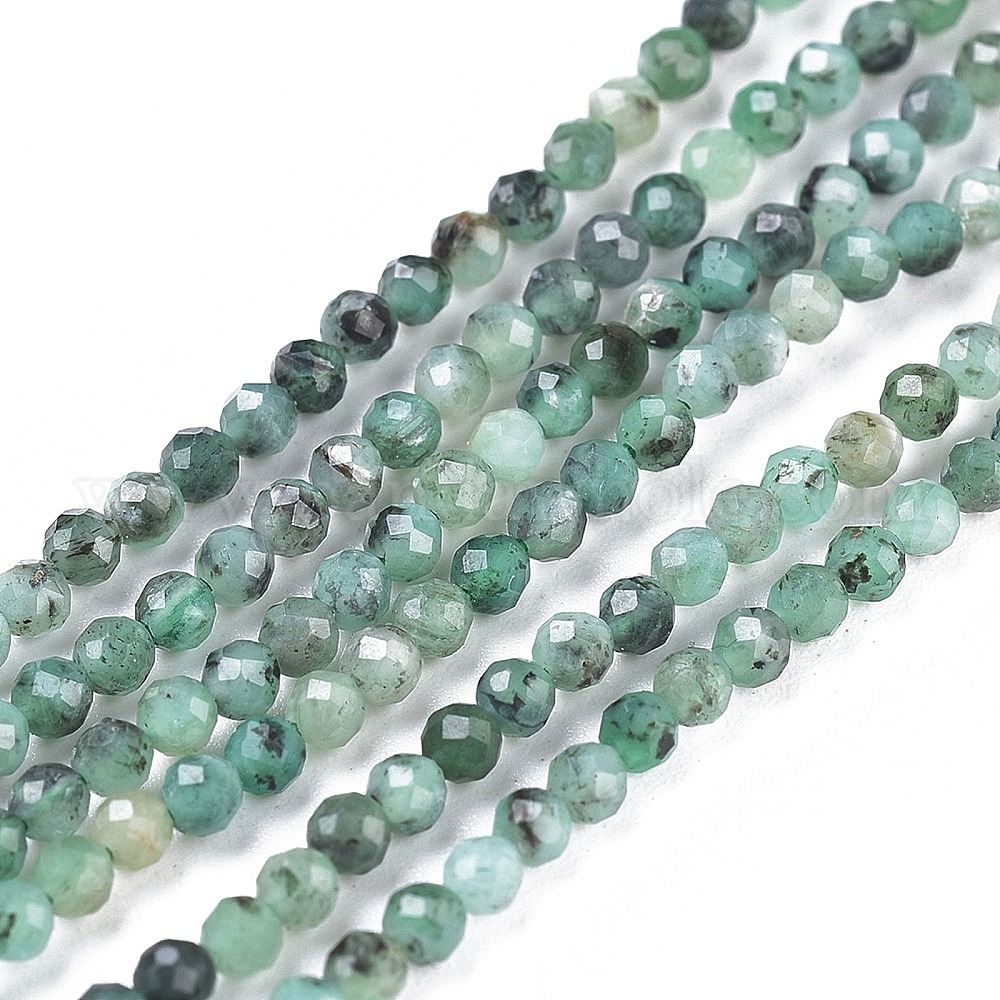Натуральные изумрудные бисерные пряди, круглые, граненые