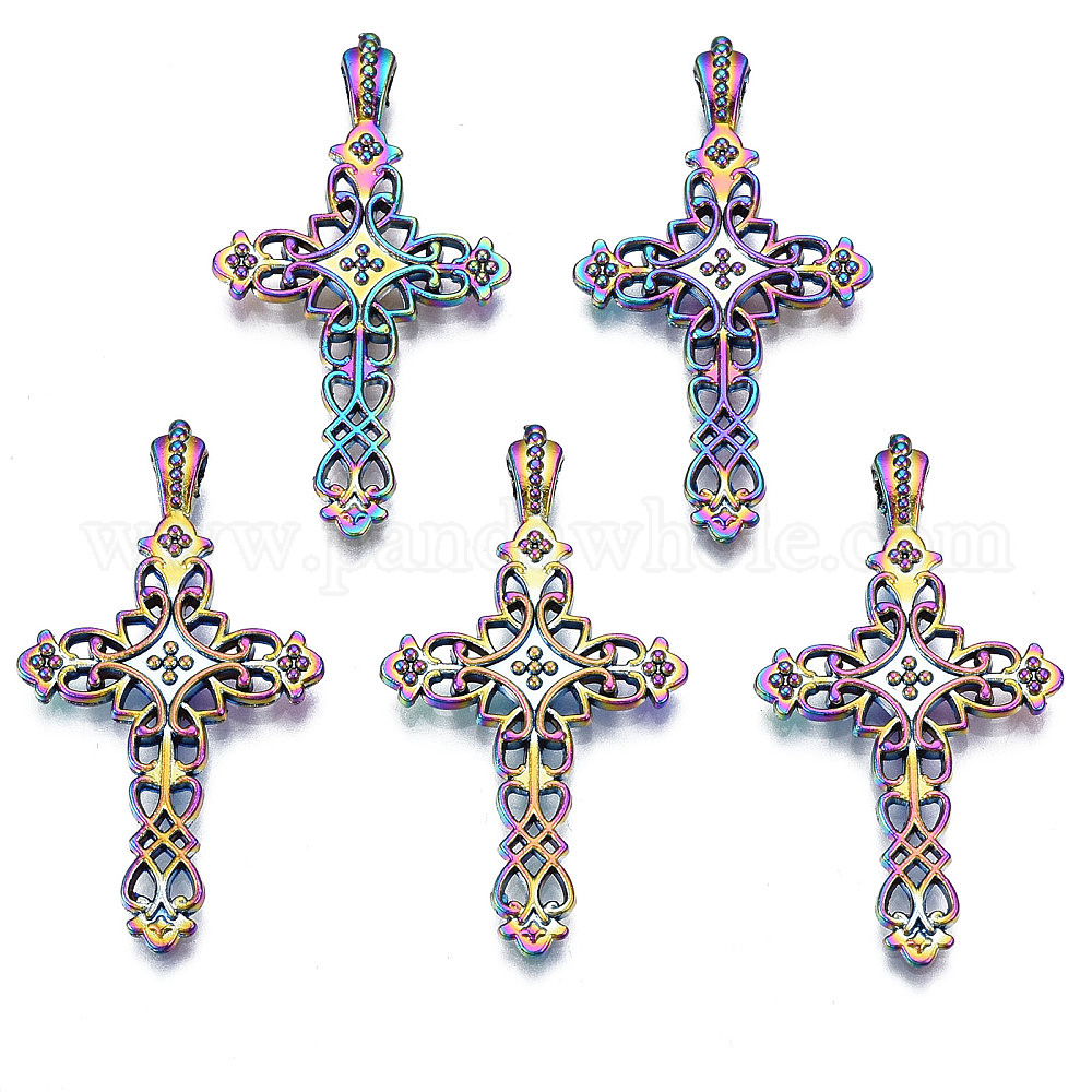 Подвеска из сплава цвета радуги с эмалью, без кадмия, без никеля и без свинца, крестик