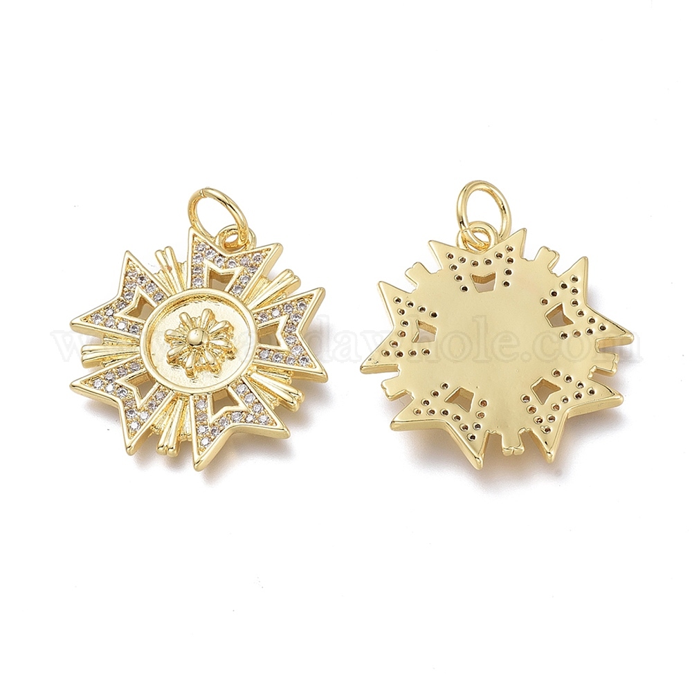 Кулон из латуни с микропаве, прозрачный кубический цирконий, под эмаль, с прыжковых колец, долговечный, цветок