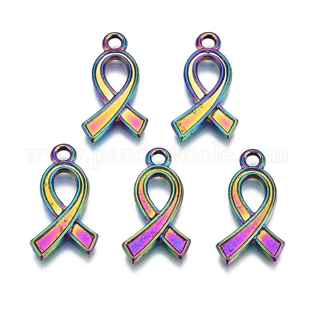 • Rainbow Color Литые подвески эмали настройки, без кадмия, без никеля и без свинца, осведомленности ленты, Радуга цветов, 21.5x11.5x2 мм, отверстие : 1.5 мм