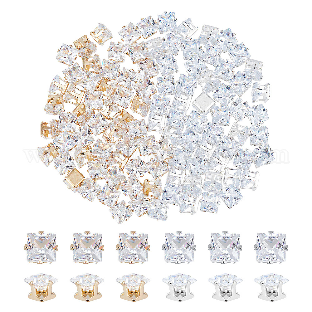 100шт 2 цвета кубический цирконий кабошоны, с железной фурнитурой, квадратный