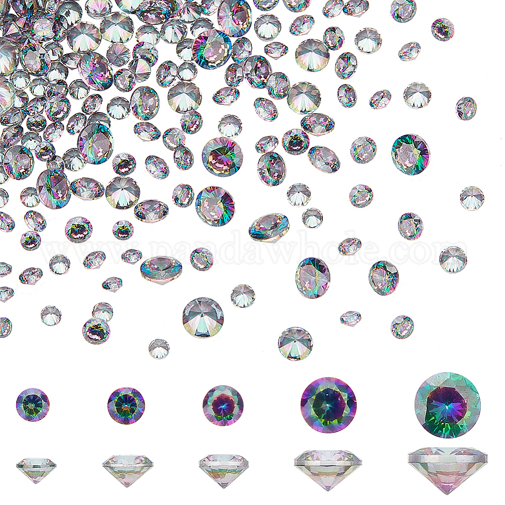 • Разноцветный 5 стиль кубический цирконий заостренный кабошон, класс А, граненые, алмаз, красочный, 1.5~3x1~2 мм, 400 шт / коробка