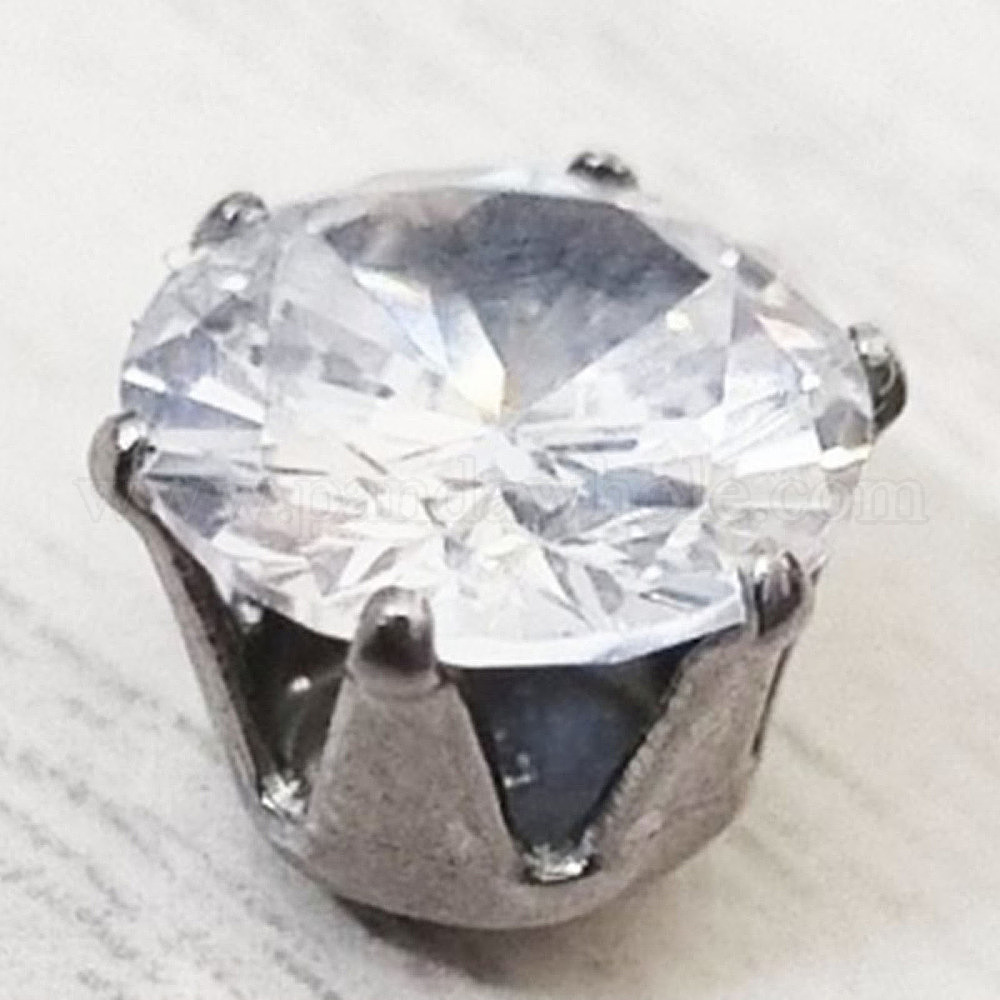 • Нержавеющая Сталь Цвет 304 кабошоны из нержавеющей стали с прозрачными кубическими цирконами, плоско-круглые, цвет нержавеющей стали, 7 мм