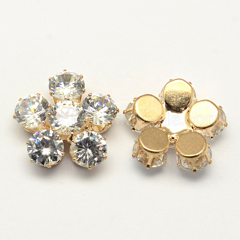 Цветочные кубического циркония кабошоны, со сплавочной фурнитурой, 22x23x8 мм