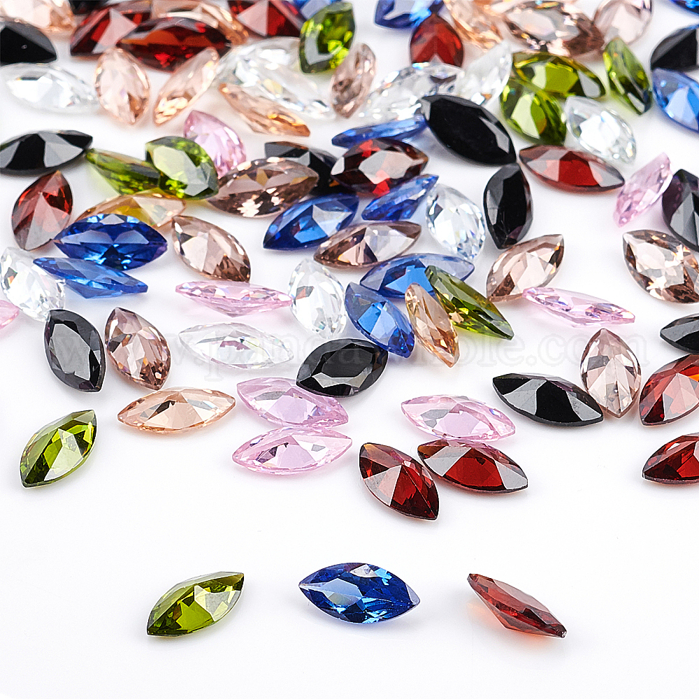 Кубического циркония указал назад кабошоны, граненые, лошадиный глаз (0237Q5)