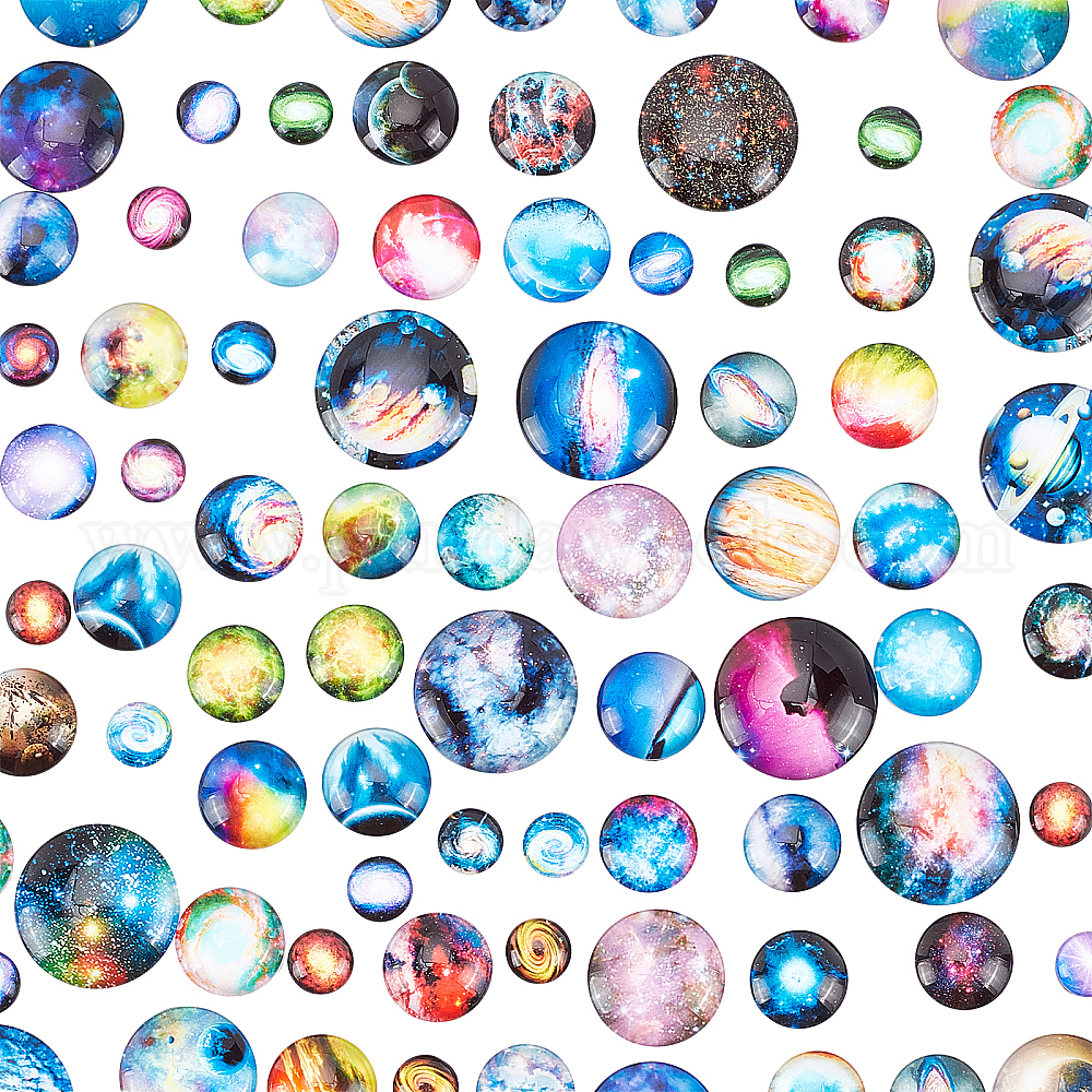 80 стеклянные кабошоны шт., для аксессуаров своими руками, полукруглый с рисунком звездного неба
