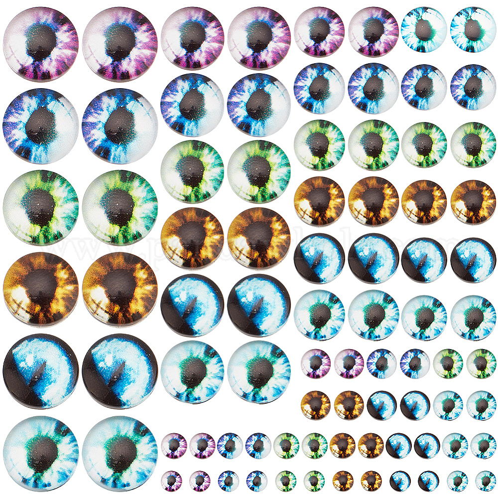 114 шт 42 стили стеклянные кабошоны, полукруглый / купол с рисунком глаз