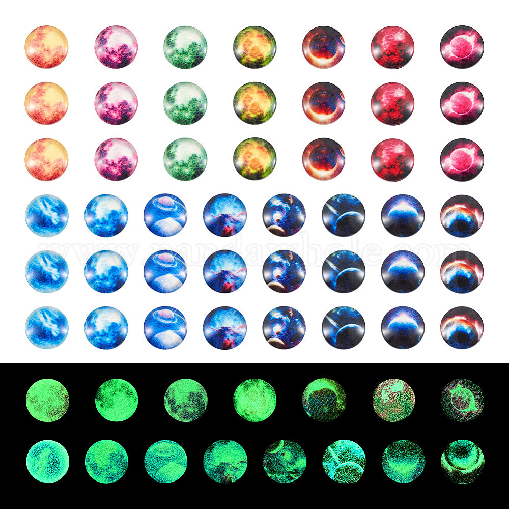 60 шт 15 стиль стеклянные кабошоны, светящийся / светится в темноте, полукруглые / купольные, лунная / лунная серия
