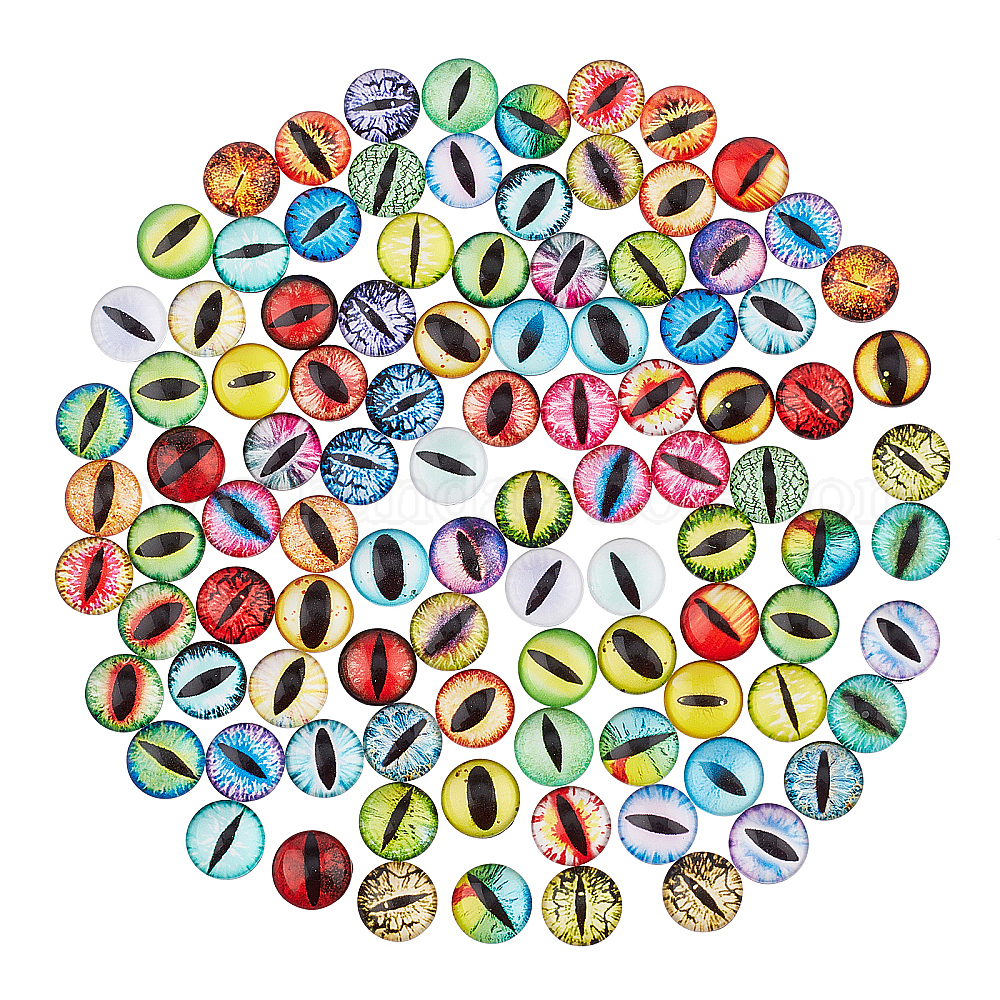 Стеклянные кабошоны с плоской задней стенкой, купол / полукруглый с рисунком глаз дракона