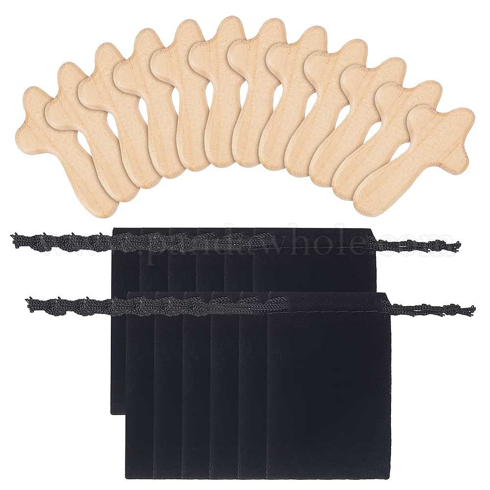 • Цвет Древесины 12шт. натуральные деревянные кабошоны, религия крест, с 12прямоугольными бархатными мешочками, деревесиные, 62x34x12 мм