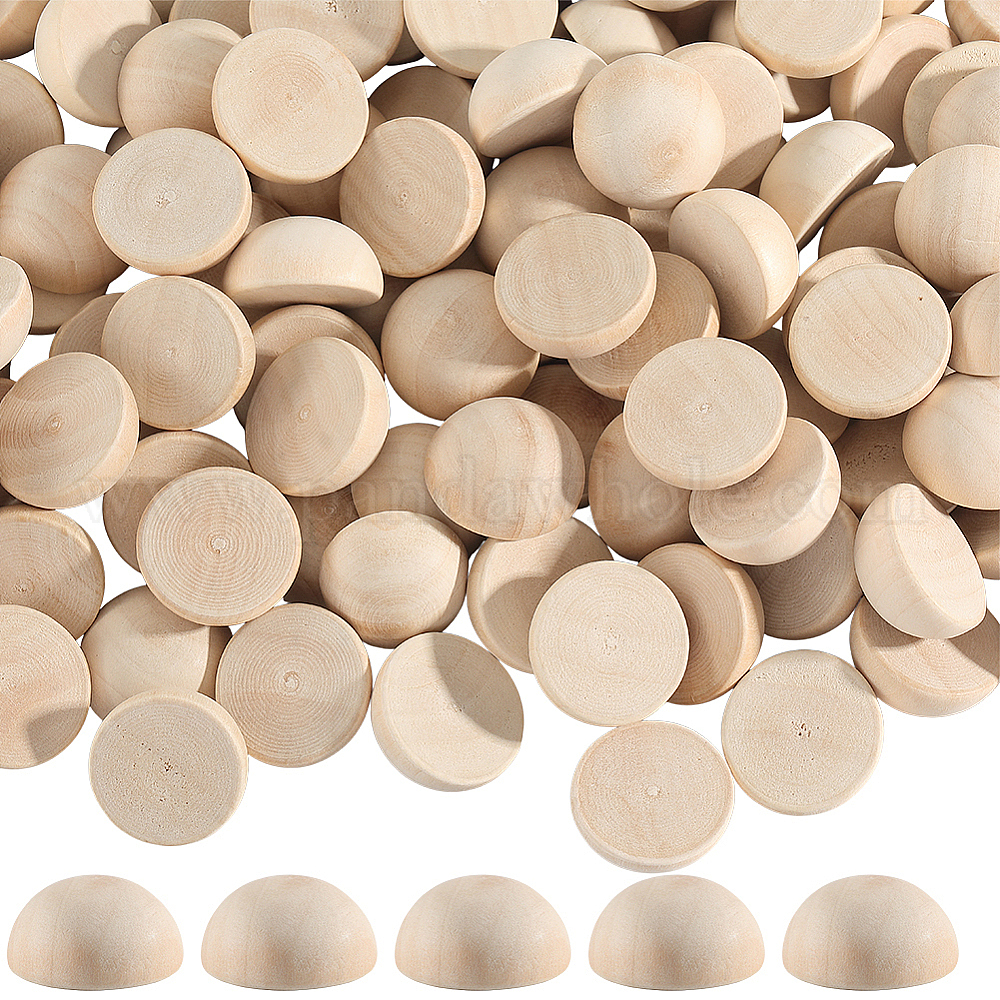 100 шт. Необработанные кабошоны из натурального дерева, неокрашенными, полукруглые / купольные