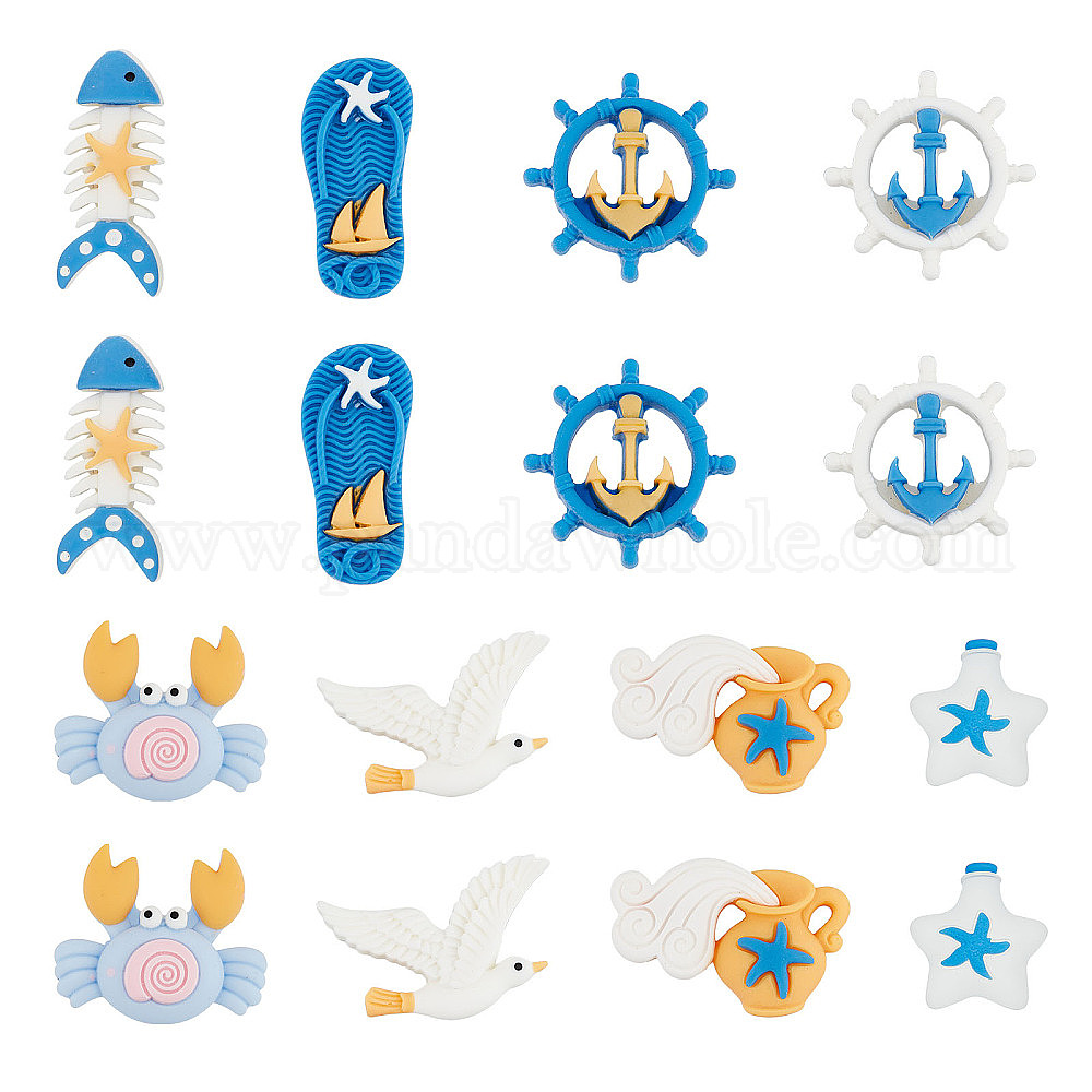 48 шт. 8 стили океанская тематика полупрозрачные смоляные кабошоны, шлем, краб, тапочка и бутылка желаний