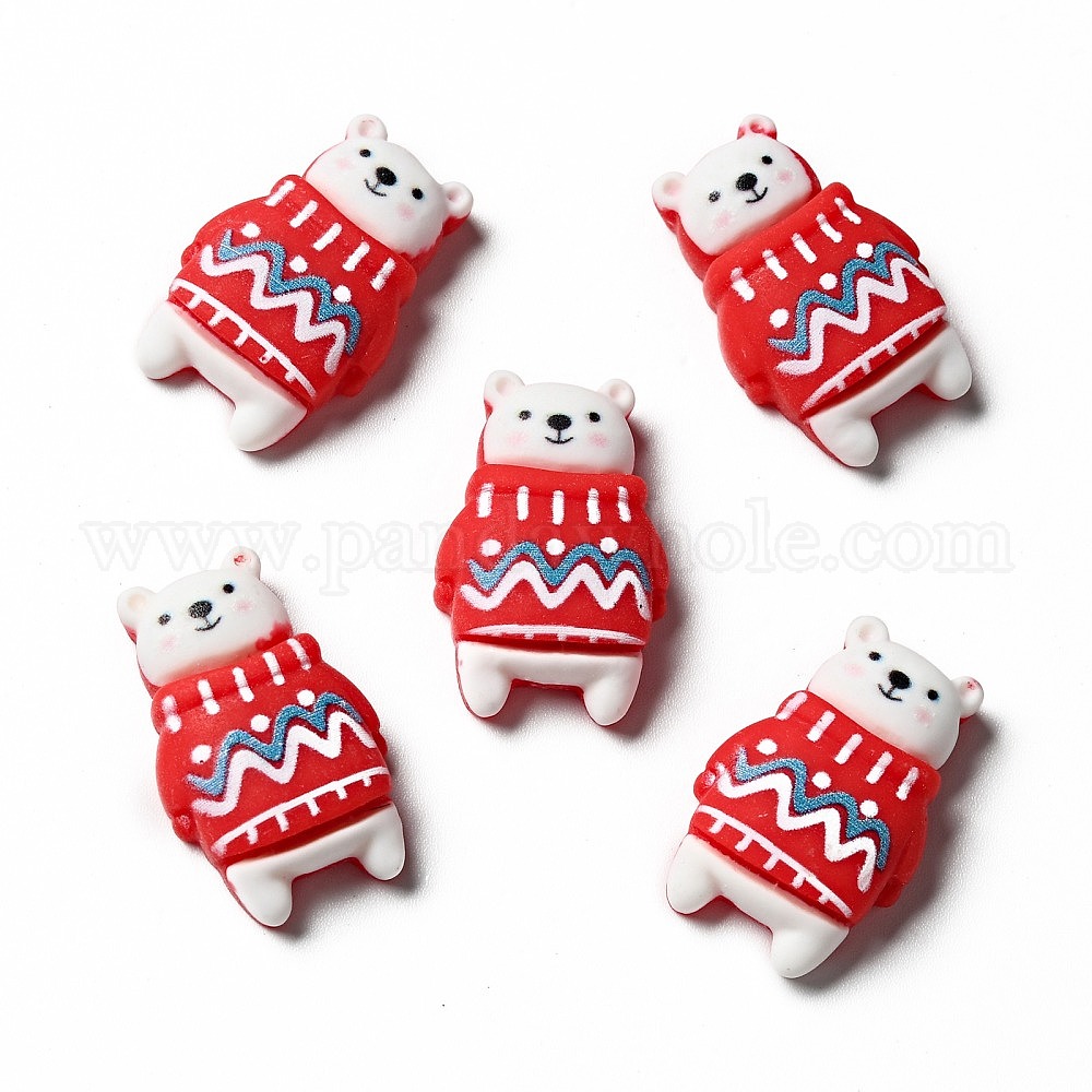 Кабошоны из непрозрачной рождественской смолы, медведь со свитером