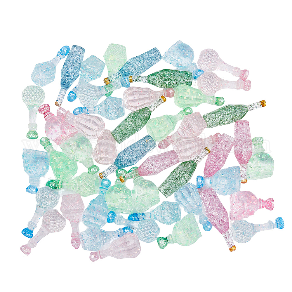 120шт 15 стили фиктивная бутылка прозрачная смола кабошон, с блестками