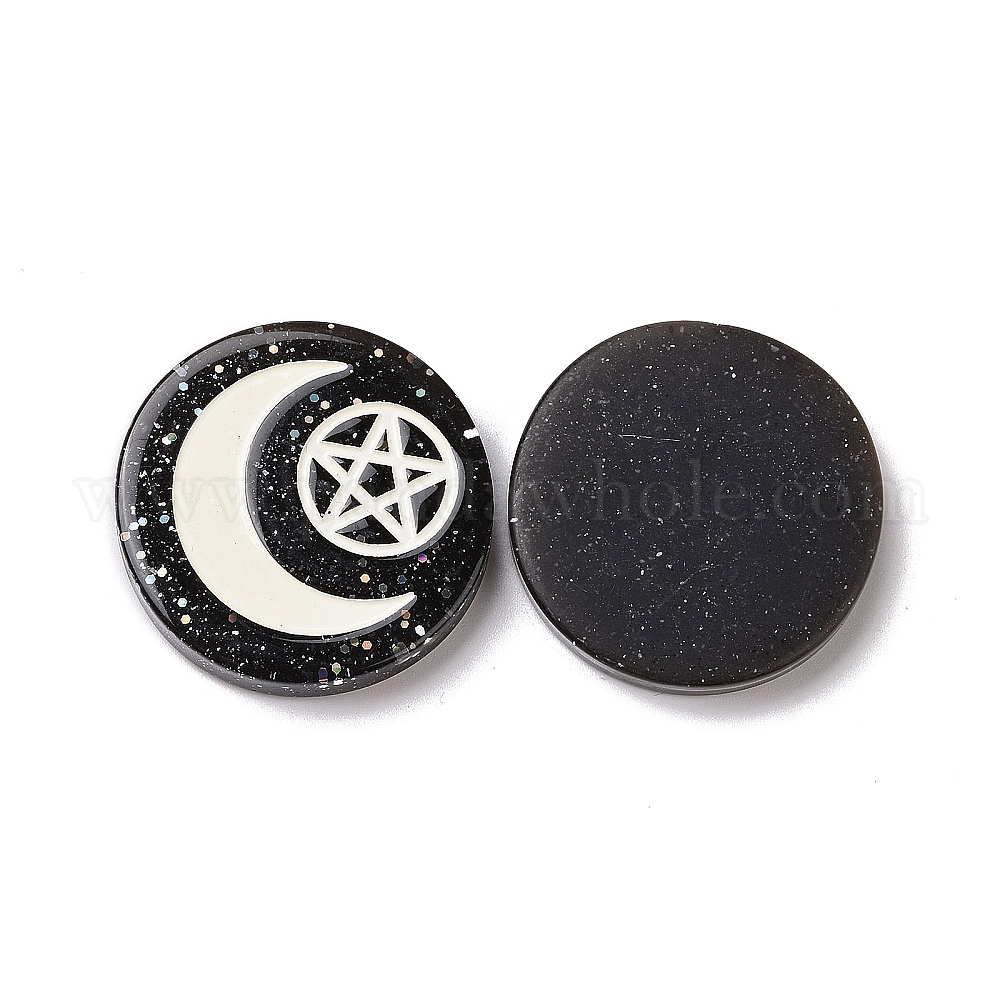 Кабошоны из смолы, с блеском порошок, плоский круглый с рисунком луны и пентаграммы
