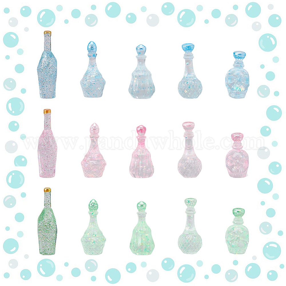 30шт 15 стили фиктивная бутылка прозрачная смола кабошон, с блестками/глиттером
