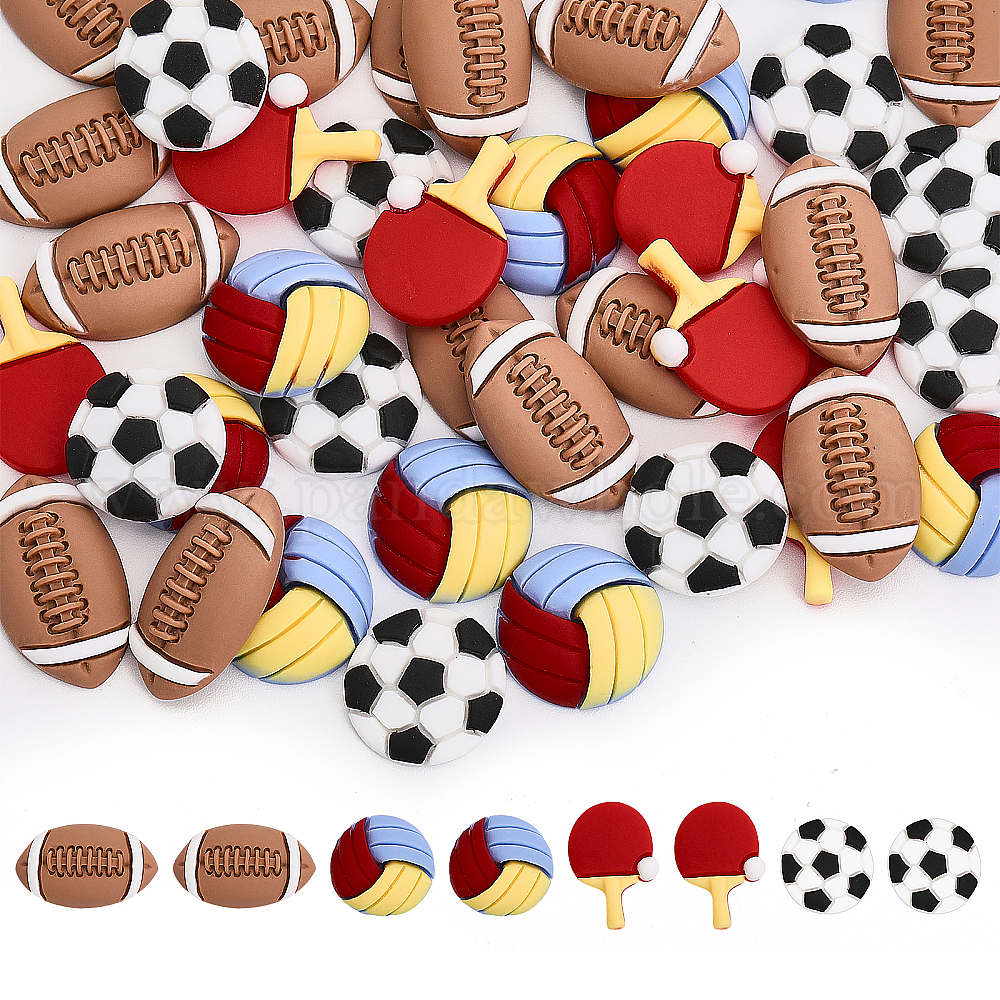 64шт 4 стили спортивная тематика непрозрачные смоляные кабошоны, регби, волейбол, настольный теннис и футбол