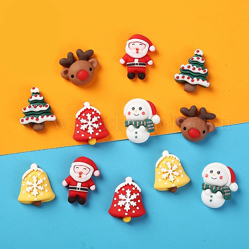 Кабошоны из непрозрачной смолы на новогоднюю тематику, кабошоны рождественской елки с оленями деда мороза, разнообразные