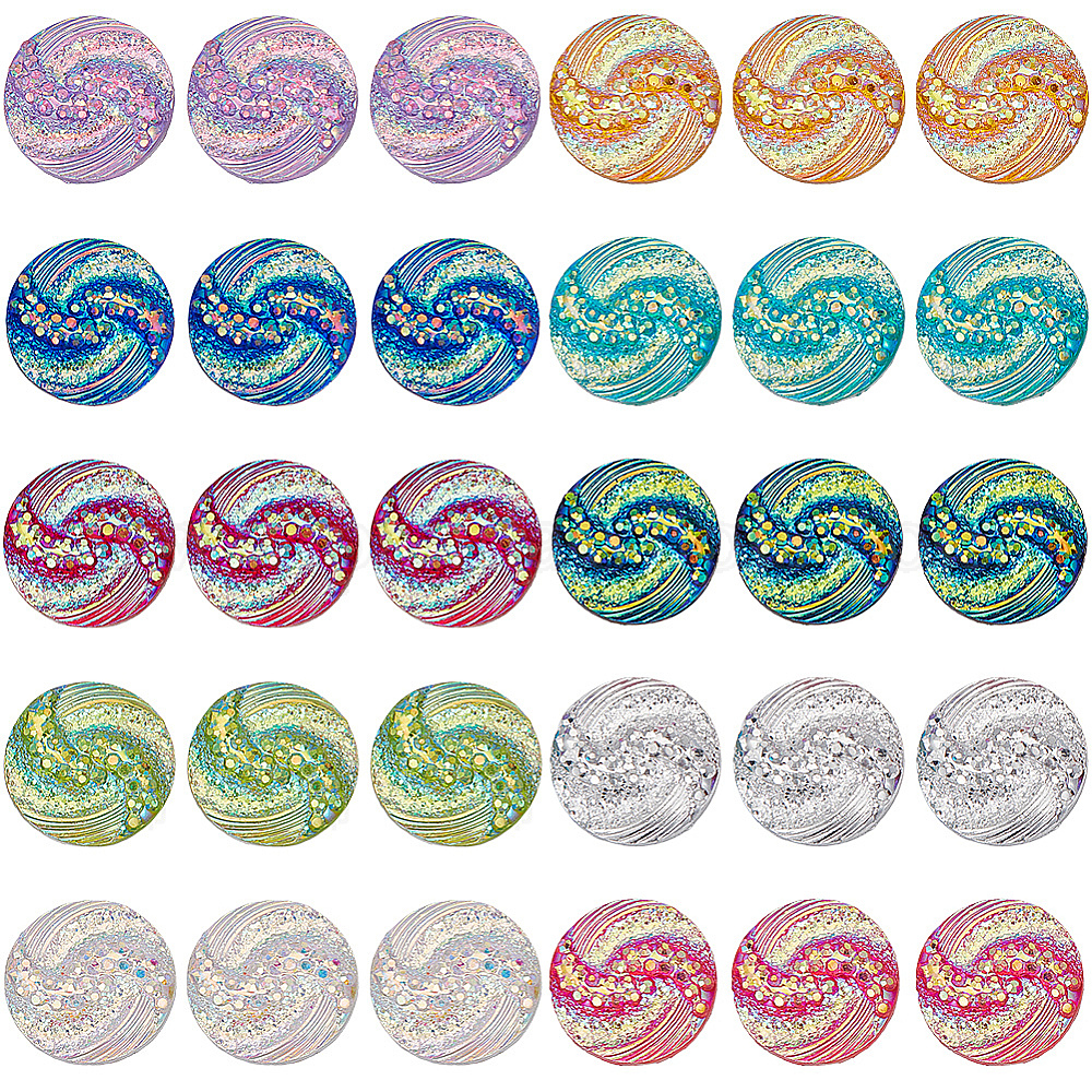 150 шт 10 цвета плоские задние кабошоны из смолы со стразами, плоские круглые с вихревыми узором