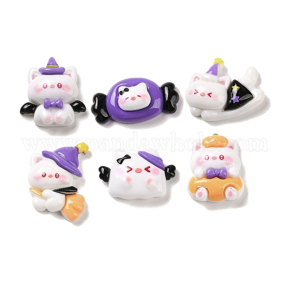 Кабошоны из непрозрачной смолы для Хэллоуина, форма кошки (02S4K3)