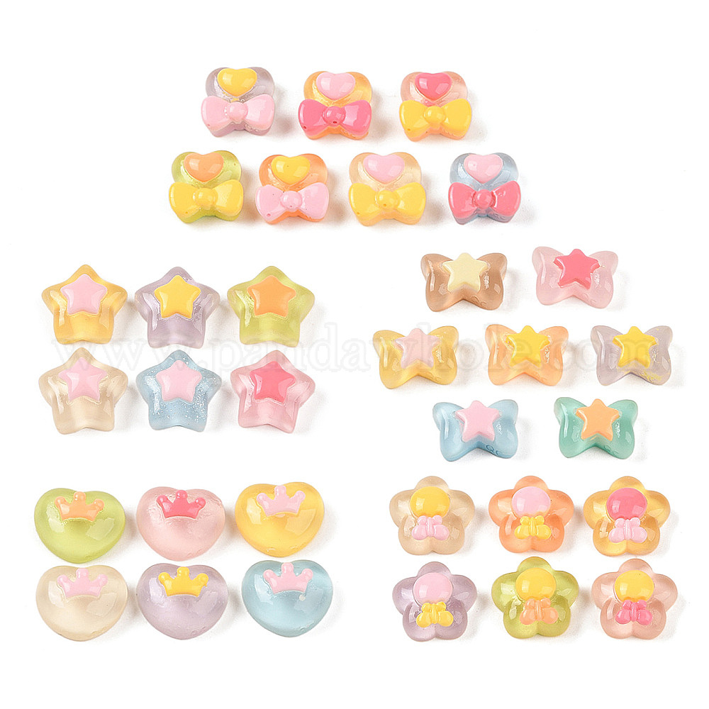 Кабошоны из полупрозрачной смолы карамельного цвета, сердце/звезда/звезда/цветок