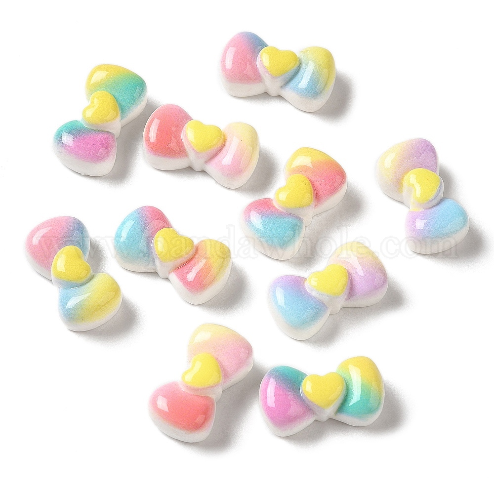 • (52) Непрозрачная лаванда Градиент цвета, непрозрачная смола, декодирование кабошонов, сердце с галстуком-бабочкой, разноцветные, 20x11x8 мм