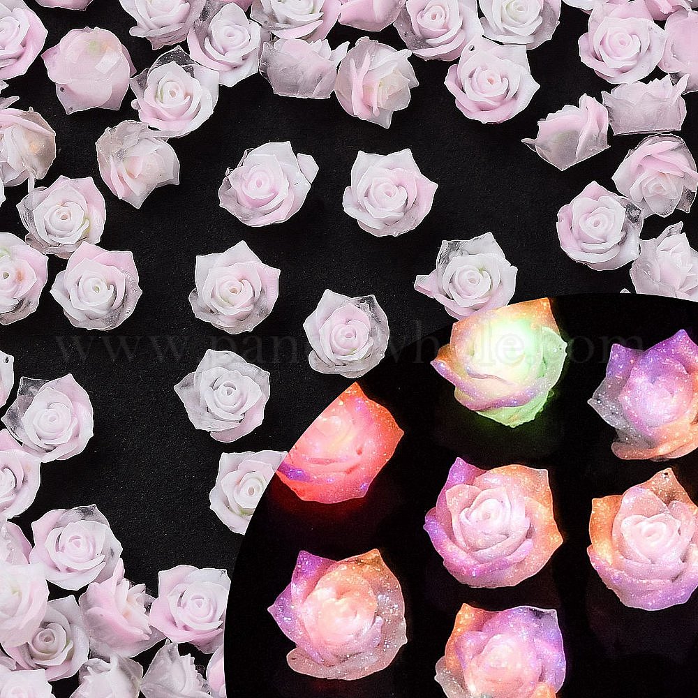 • Розовый Кабошоны из трехцветной светящейся смолы с декодированием, светится в темноте, цветок, туманная роза, 7x7x4 мм