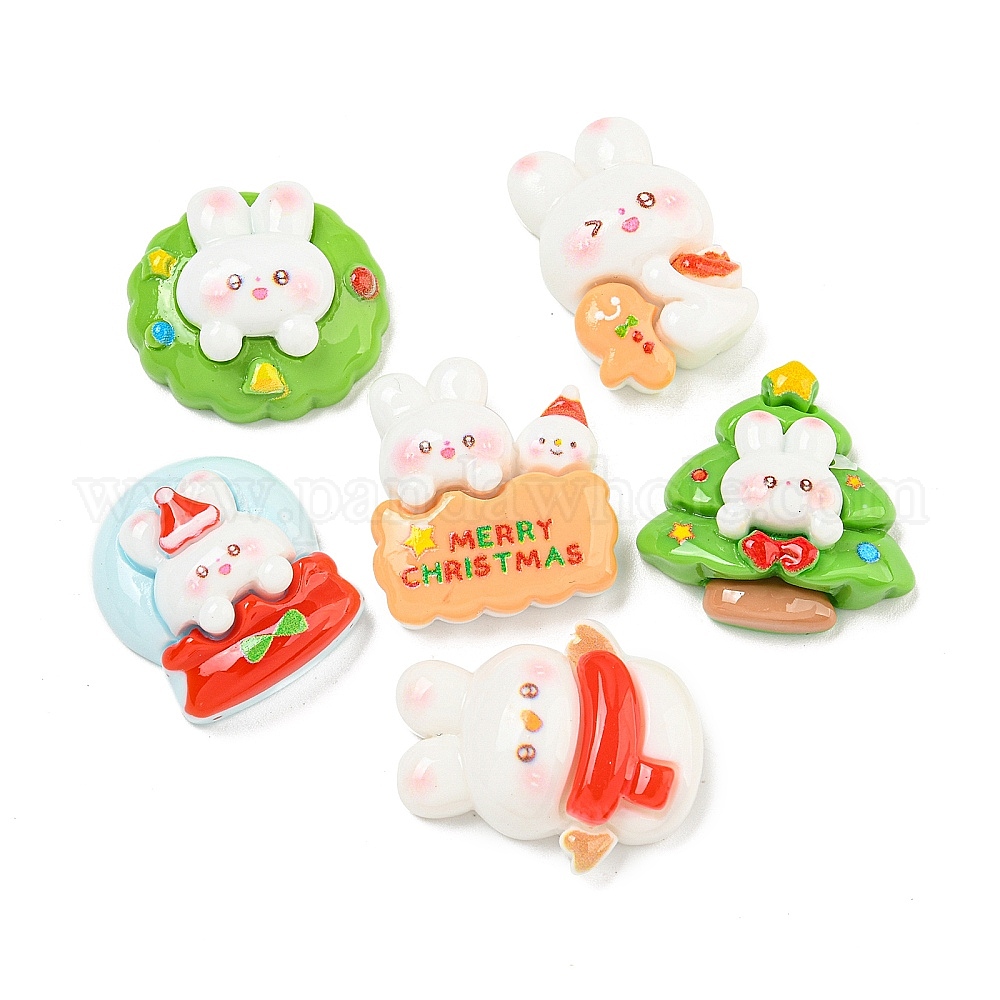 Рождественский кролик на тему непрозрачной смолы, декодированные кабошоны, снеговик/пряничный человечек/кролик/дерево/хрустальный шар