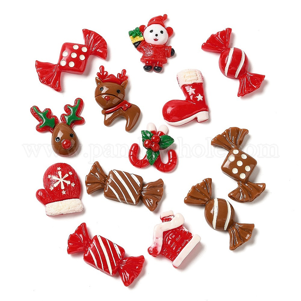 Рождественская тема, непрозрачная смола, декодированные кабошоны, олень, конфеты и леденец, разнообразные