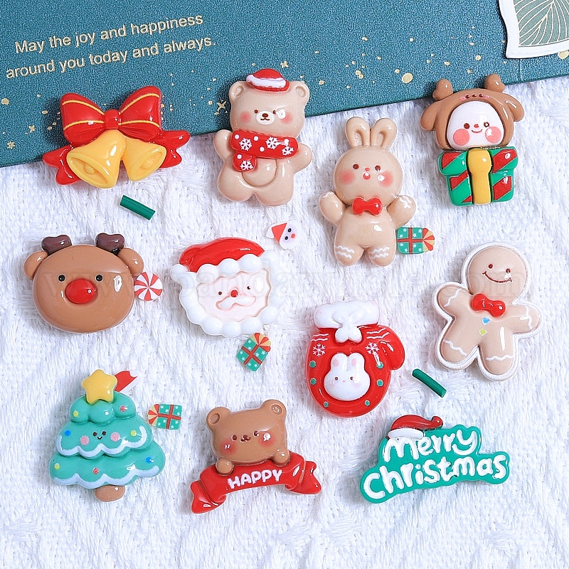 Рождественская серия из непрозрачной смолы декодирует кабошоны, Рождественская елка/олень/пряничный человечек/Санта-Клаус