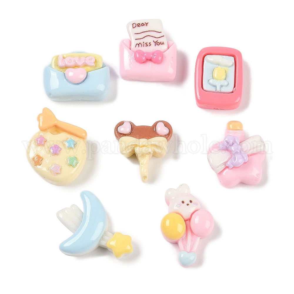 Непрозрачная смола декодирует кабошоны, бутылка желаний/луна/конверт, разноцветные (02WWEC)
