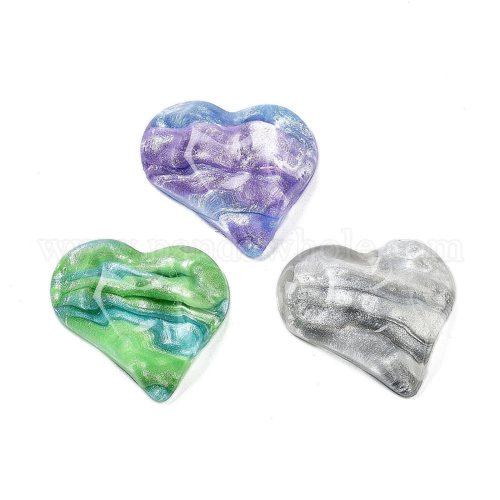 Полупрозрачная смола декодирует кабошоны, персиковое сердце с водной рябью и блестящей пудрой