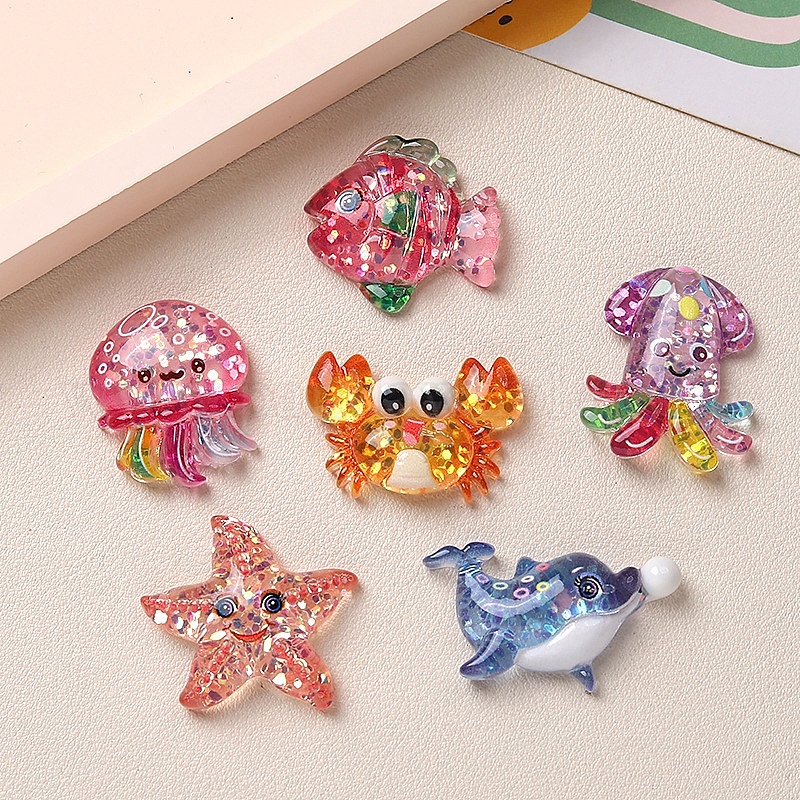 Кабошоны из смолы на тему морских организмов, с блеском порошок (02XF3E)